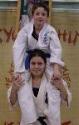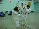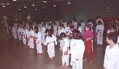Kevin Adsade is the first junior to get Sensei Isabelle Nowlan in the face with a kick. Sensei Isabelle won the World Champion Heavyweight title a week after this belt exchange happened. Junior Instructors (Above from Left to Right) Senseis for the Juniors; Marji Cormier holding Brandon Croft; Alice Arseneau holding Valérie Martin; Nicole O'Connor holding Kevin Adsade; Marie-Clare O'Connor holding Monika Cormier; Roger Belliveau holding Jorden Thibodeau; Andre Doiron holding Shanie LeBlanc. Once a year Centres Ray Cormier hold an awards night for the Junior class. This is to give the students more confidence and to show that the instructors notice each student. The awards that are given are for specific areas of karate. Such as fighting, katas, breaking, etc. Sometimes they are certain students that may stick for an activity that is not usually recognized. In such cases the head instructor will reward this student with an original award. (Above Left To Right) Awards Night 1995, Awards Night 1999. |